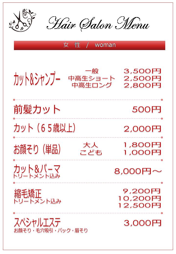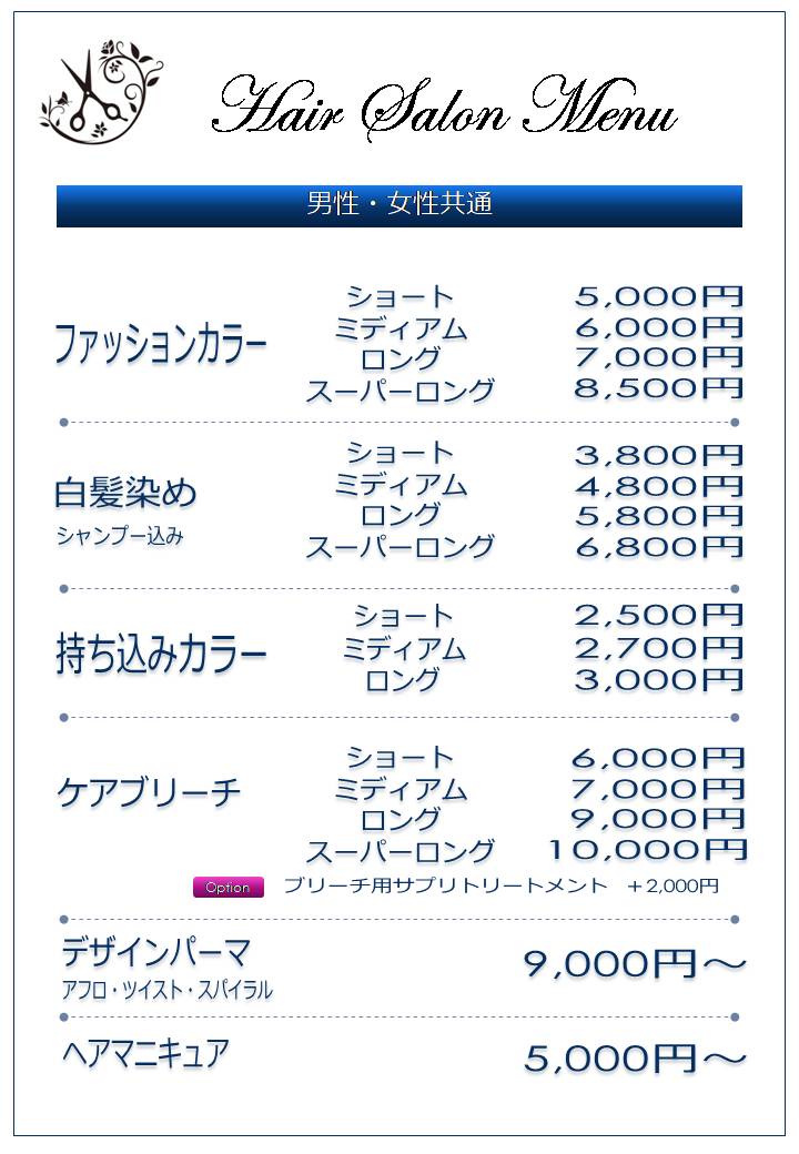 部位ごとの料金